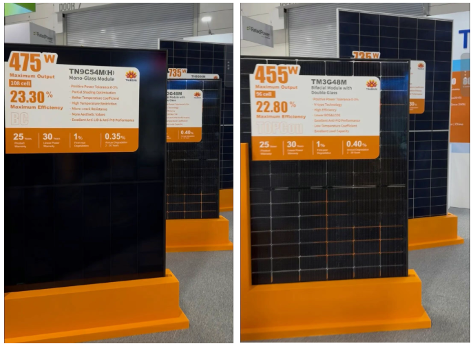 腾晖光伏本次重点展出的N型产品组合,全面覆盖了澳大利亚市场的多元需求。其中,TH8G66M 735W(HJT)组件以23.66%的极致效率和领先的温度系数,成为追求最低度电成本的大型地面电站之选;TN9C54M 475W(BC)组件则凭借23.30%的效率、卓越的抗阴影能力及全黑美学,精准定位于工商与高端户用屋顶场景;而基于N型TOPCon技术的TM3G48M 455W双玻组件,则以22.80%的效率、更低的系统成本和卓越的可靠性,为各类严苛应用提供了高价值的稳健之选。
